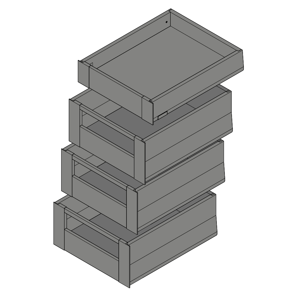 Merivobox SPACE TOWER, 1 Innenlade + 3 Innenauszüge mit Reling - für 16er Seiten - Schrankaußenbreite KB 600 mm (innen 568 mm) - Nennlänge 550 mm - oriongrau - Sets inkl. 40 kg-Führung, Distanzleisten, Schrauben (ohne Scharniere) - inkl. Zuschnitt
