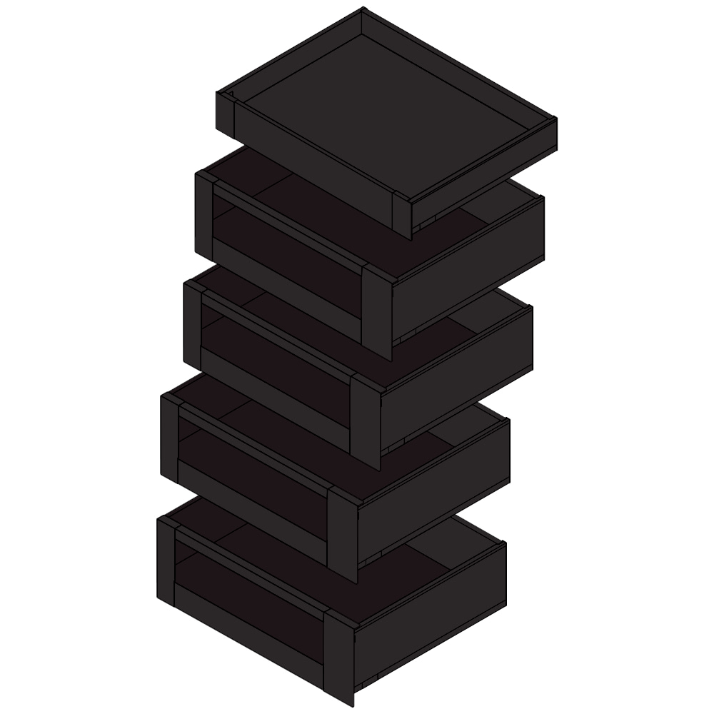 Legrabox SPACE TOWER, 1 Innenlade + 4 Innenauszüge mit Reling - für 16er Seiten - Schrankaußenbreite KB 450 mm (innen 418 mm) - Nennlänge 500 mm - carbonschwarz - Sets inkl. 40 kg-Führung, Distanzleisten, Schrauben (ohne Scharniere) - inkl. Zuschnitt