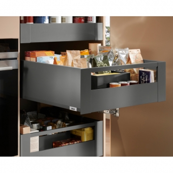 Mit unterschiedlichen Bewegungstechnologien wird SPACE TOWER noch komfortabler. Mit der elektrischen Öffnungsunterstützung SERVO-DRIVE öffnen Auszüge automatisch: einfaches Antippen genügt.
