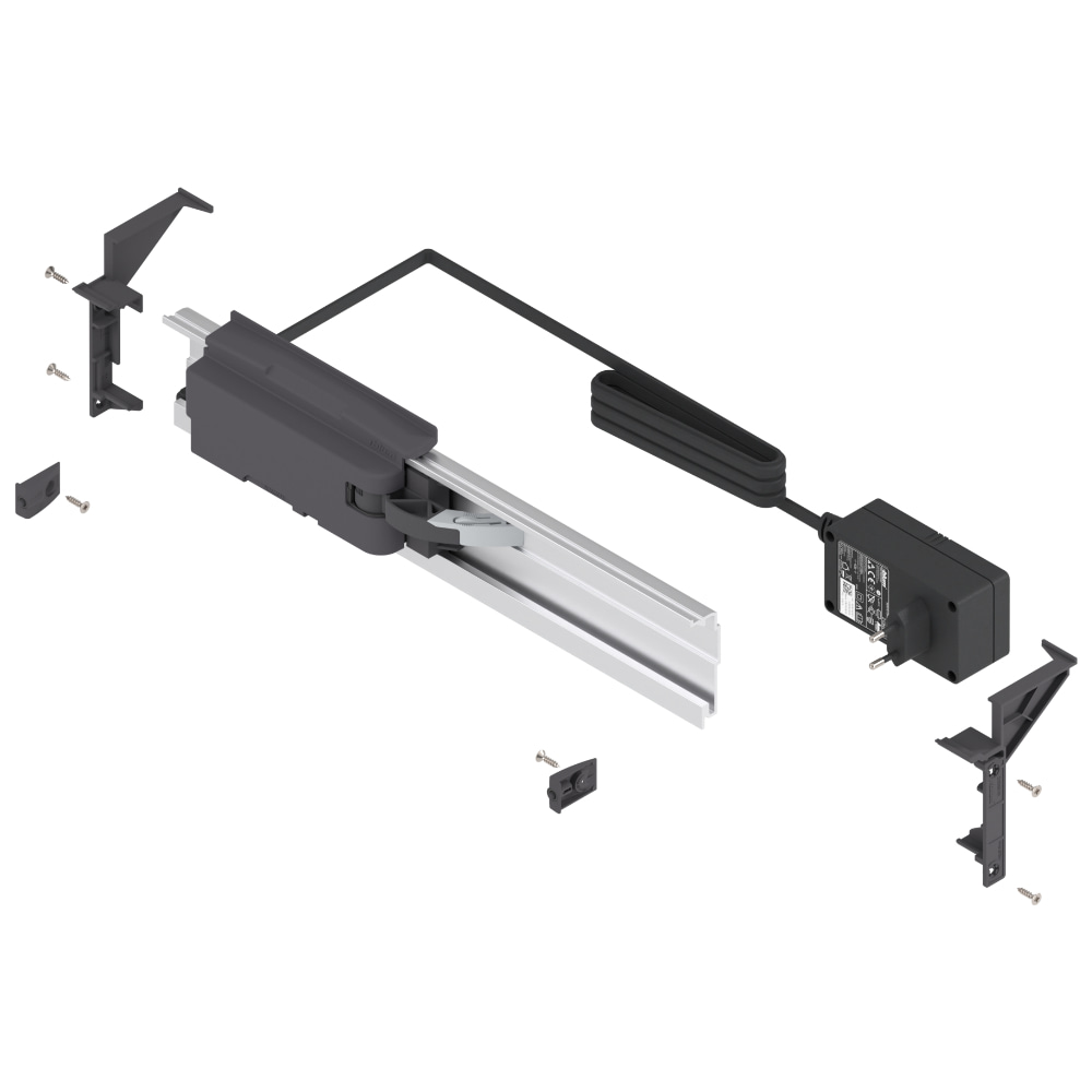 Das Komplett-Set enthält alle Teile, die für die Ausstattung eines Abfallauszugs mit SERVO-DRIVE (elektrischer Öffnungsunterstützung) nötig sind.